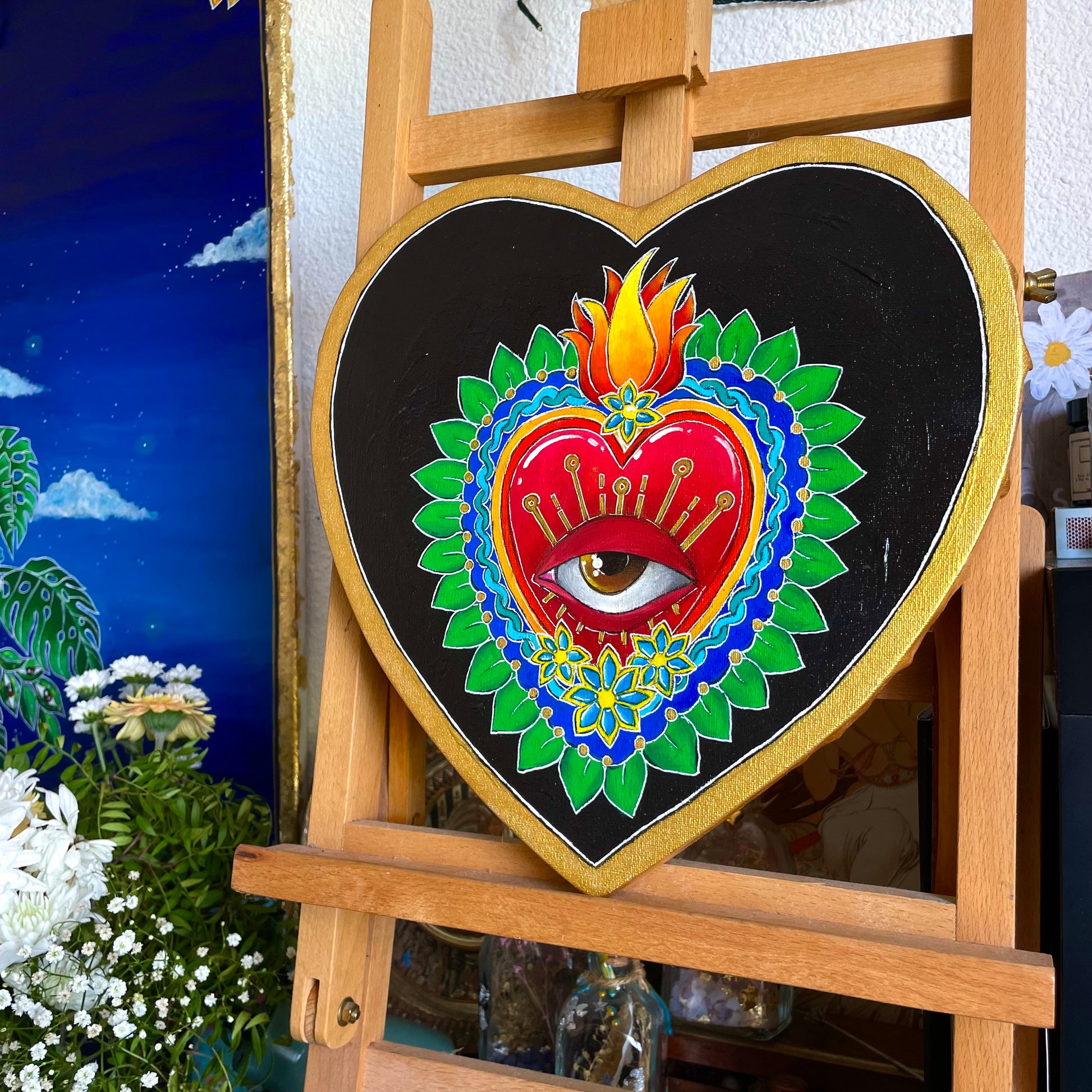 Acrylique et posca sur toile de 29cm, finition au vernis brillant, 2024.