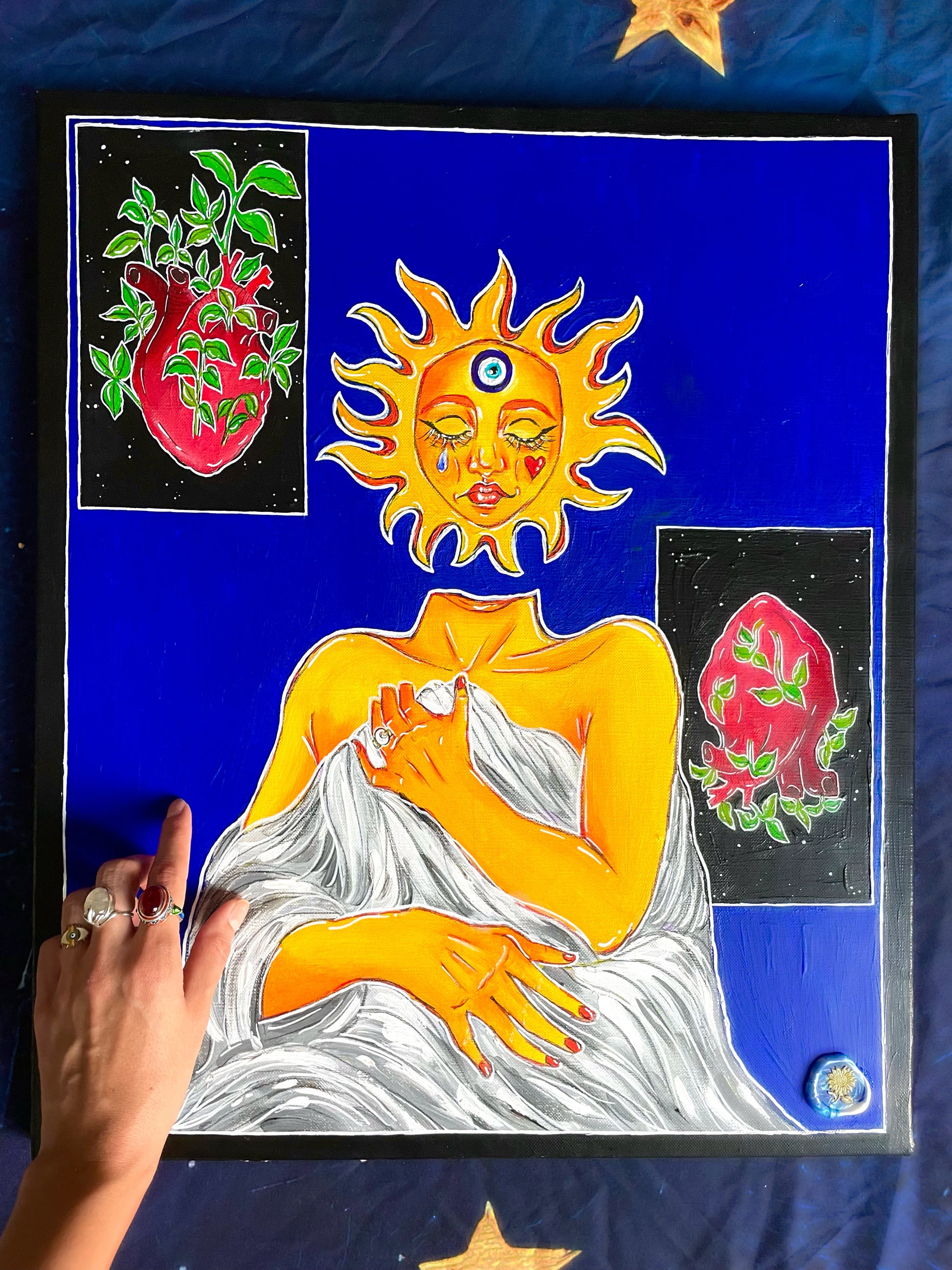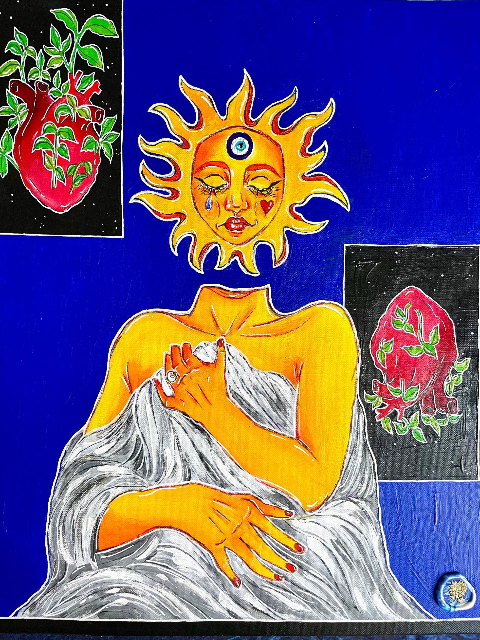Acrylique et posca sur toile de lin, 45x55cm, 2025.