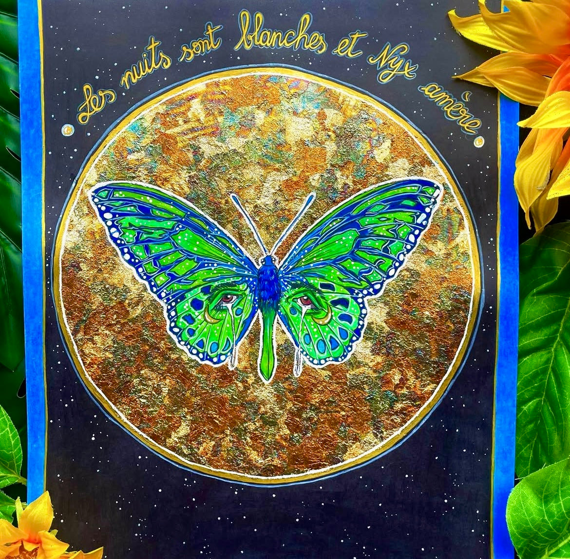 Aquarelle, crayons de couleurs et feuilles d’aluminium sur format A3 (29,7x42cm), 2023.